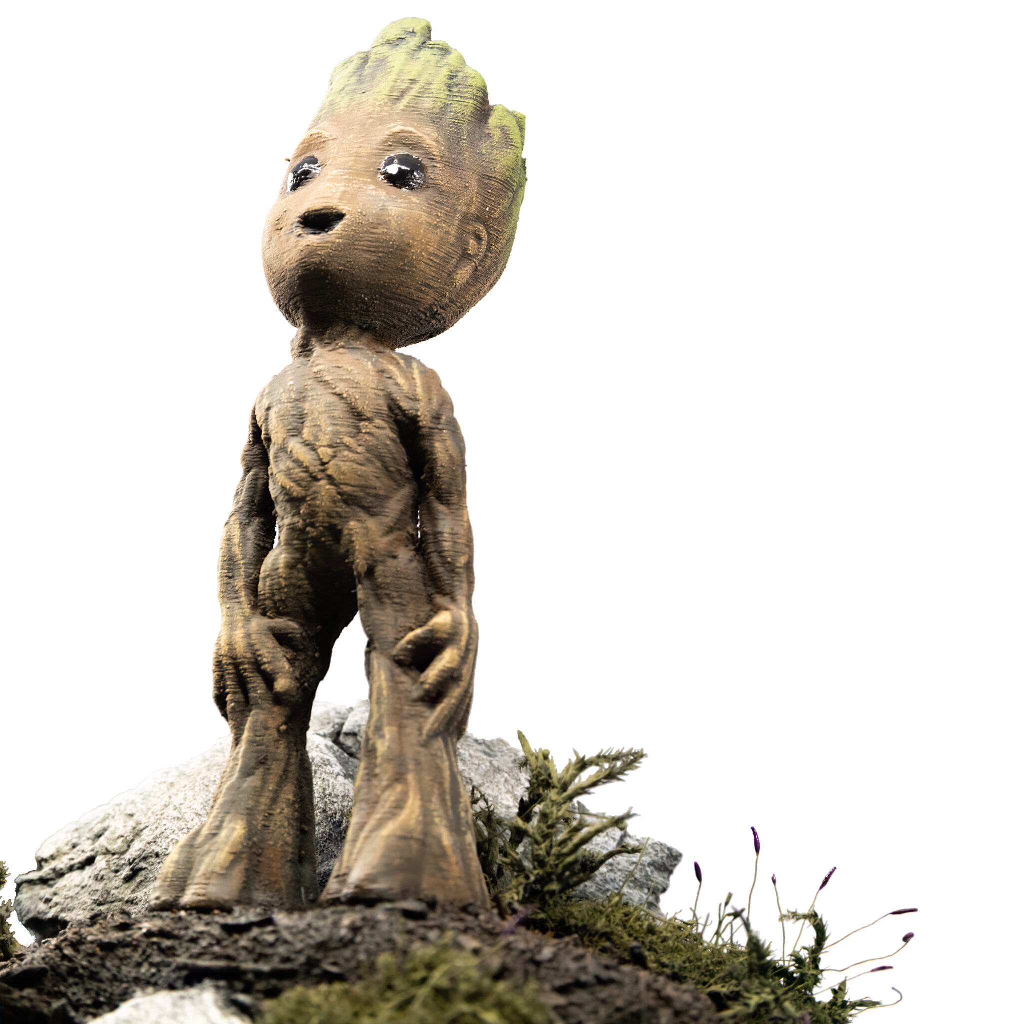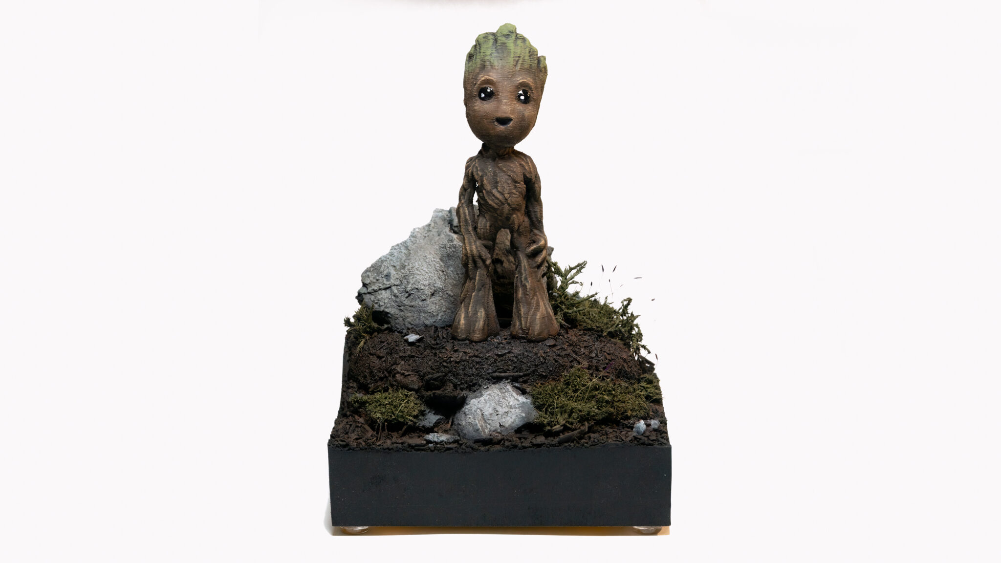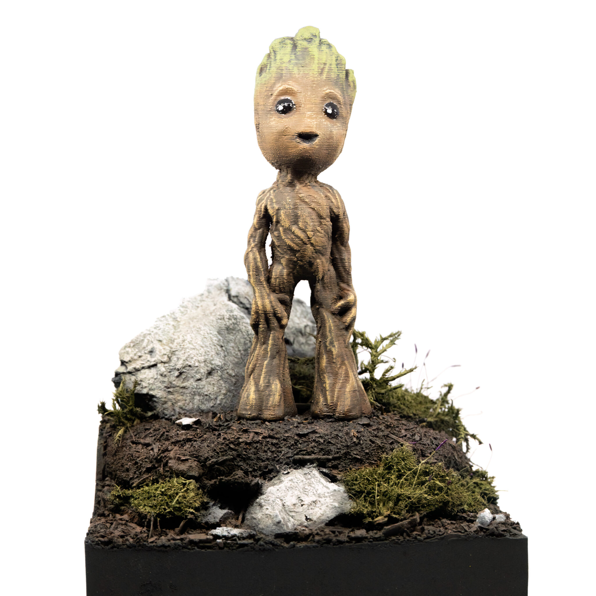 Also Spray-Box aufgebaut und den Kompressor angeworfen. Als Grundierung wählte ich Schwarz, um einen einheitlichen Untergrund zu erhalten. Nach dem Grundieren kam der kreative Teil: bemalt und abgebürstet mit verschiedenen Brauntönen und Oliv sowie normales Grün für die “Frisur”. Als letzter Schritt kam ein matter Klarlack für das gesamte Modell und glänzender Klarlack für die Augen, um ihnen einen realistischen Glanz zu verleihen.
