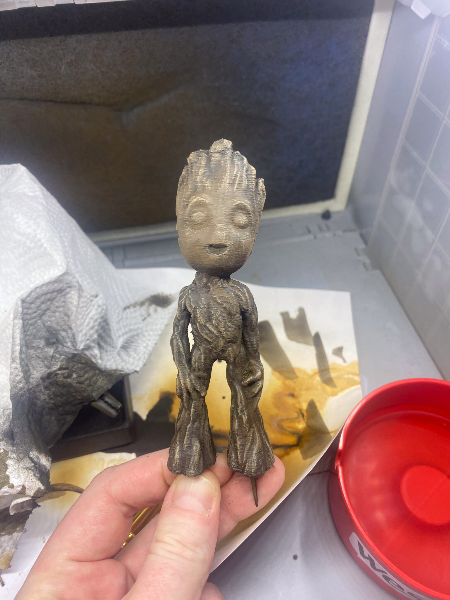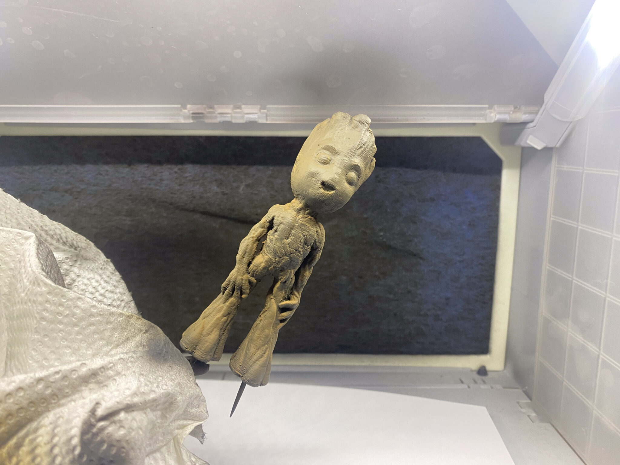 Nachdem ich den kleinen in den Händen hielt, war klar, dass einige Schleifarbeiten vor mir lagen, um ihn fürs bemalen vorzubereiten.