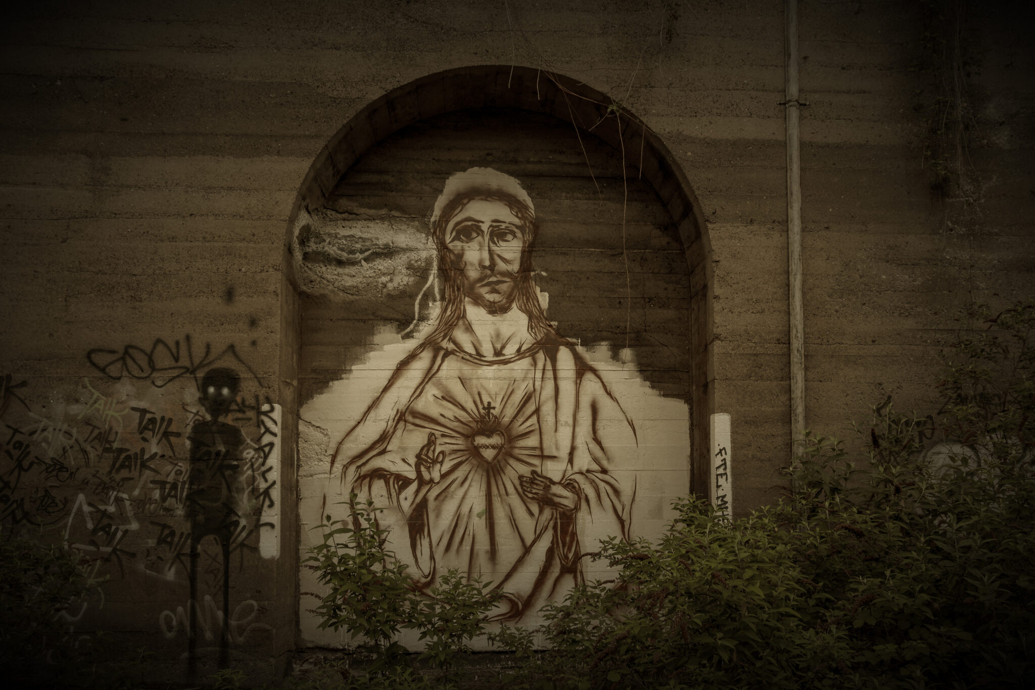 • Graffiti: Besonders das große Jesus-Graffiti fällt sofort ins Auge. Es verbindet Elemente der Street Art mit religiöser Symbolik und verleiht dem Ort eine eigenwillige, fast spirituelle Präsenz, die sich harmonisch in die verfallene Umgebung einfügt.