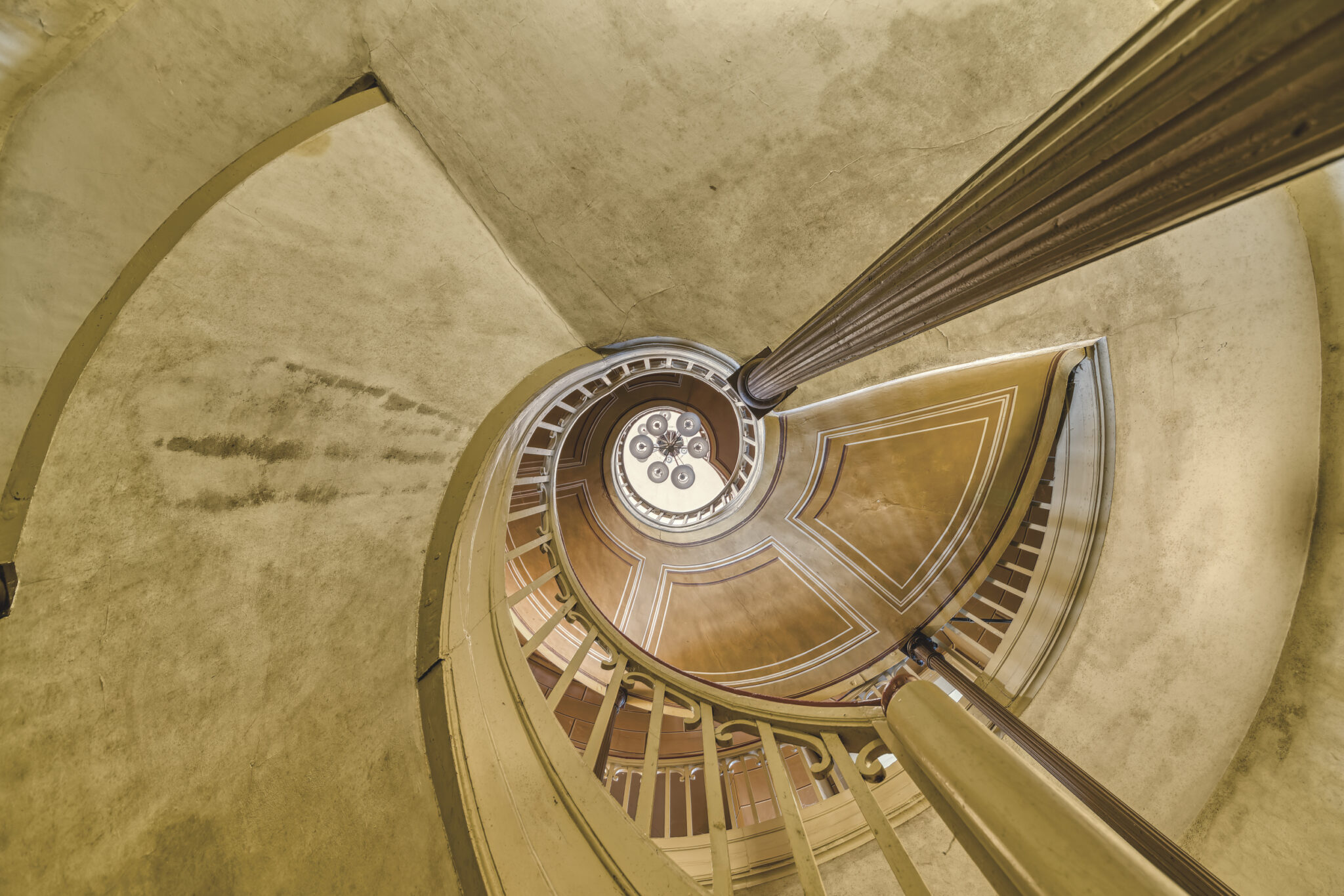 Was sofort auffällt, ist die erhabene Eleganz der Architektur. Die Treppenhäuser, mit ihrer spiralförmigen Anmut, erinnern an eine vergangene Ära, in der Handwerkskunst und Ästhetik Hand in Hand gingen. Die prachtvollen Räume, einst gefüllt mit Gesprächen, Lachen und Musik, warten nun darauf, wieder mit Leben gefüllt zu werden.
