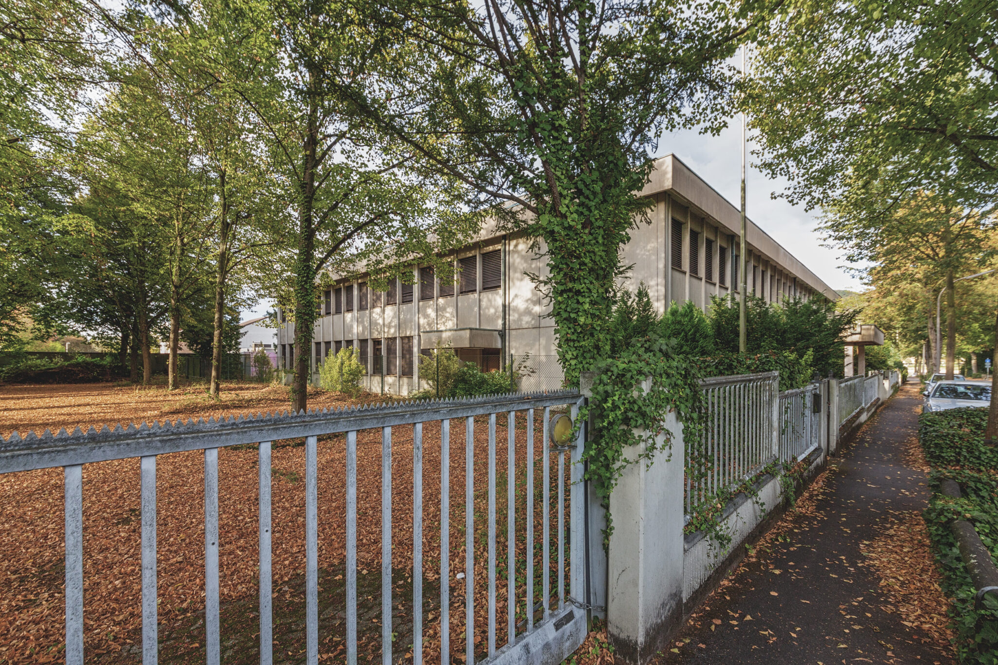 Am 8. Oktober 2016 entschied ich mich, diese ehemalige Botschaft zu besuchen. Der Himmel war an diesem Tag bedeckt, ein graues Licht drang durch die Wolken und verstärkte das Gefühl der Verlassenheit, das diesen Ort umgibt. Schon beim Betreten des Grundstücks umfing mich eine seltsame Mischung aus Neugier und Melancholie. Die Natur hatte sich das Gelände zurückerobert, Büsche und Unkraut wuchsen wild, und das einst makellose Pflaster war nun mit Moos überwuchert.