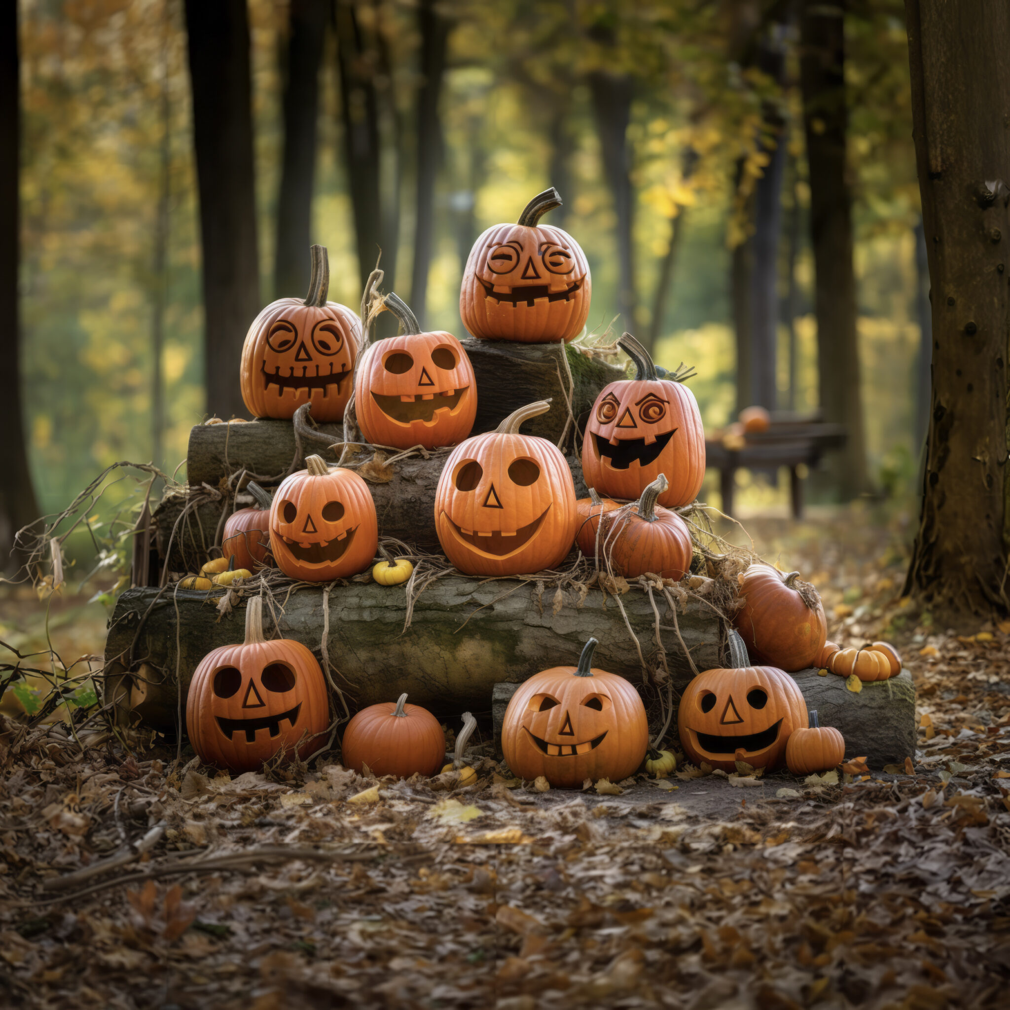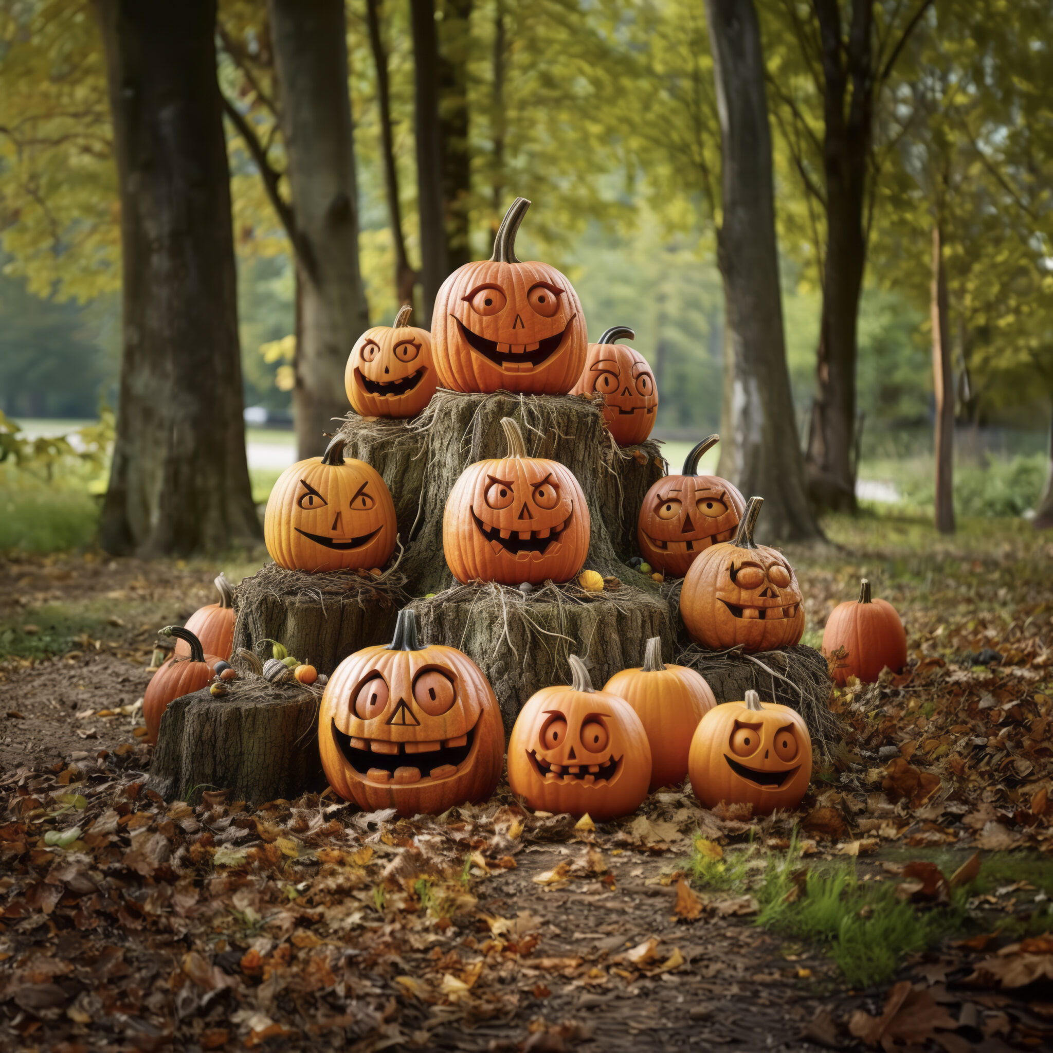 Ein alter, verlassener Pfad führte zu einer Lichtung, wo eine einzigartige Versammlung von Kürbissen stattfand. Aber dies waren nicht einfach nur Kürbisse. Sie waren geformt und geschnitzt, um Gesichter zu zeigen, die voller Leben und Persönlichkeit waren. Von frechen Grinsen bis zu gruseligen Grimassen, die Stimmungen dieser Kürbisse waren so vielfältig wie die Blätter an den Bäumen.