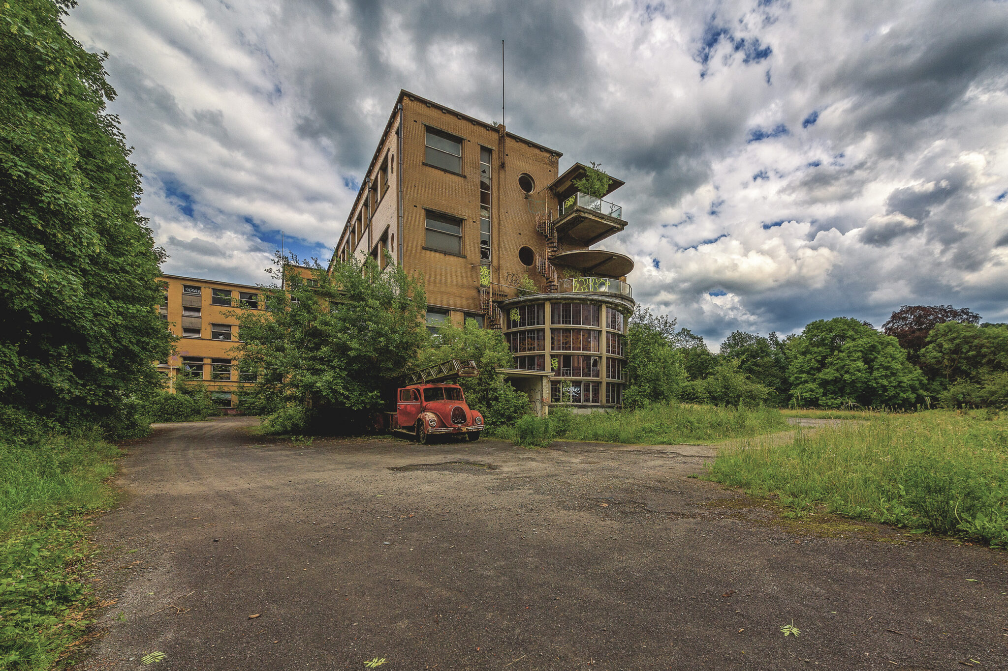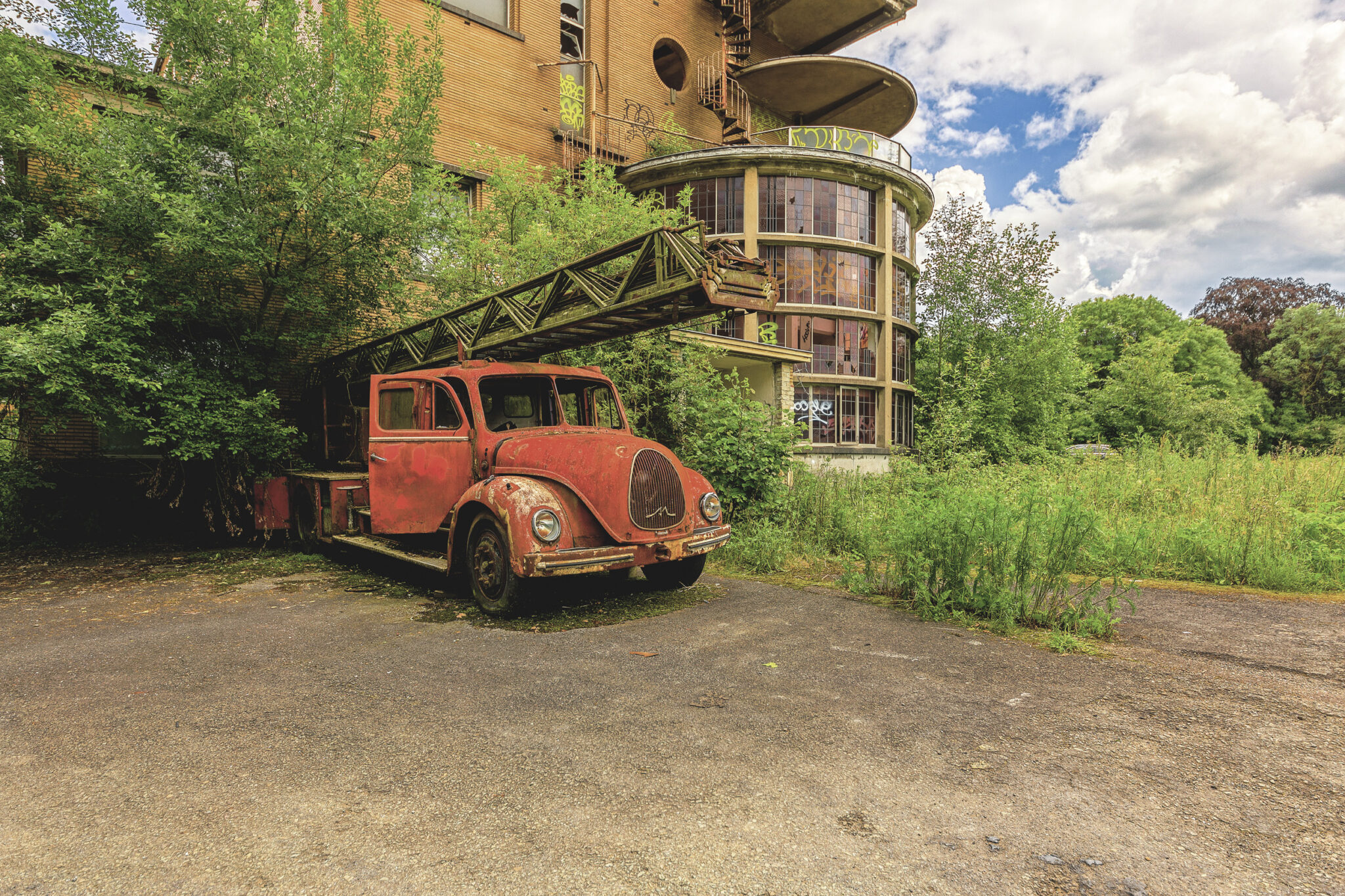 Als ich ankam, war ich von der Ruhe des Ortes beeindruckt. Das Preventorium Dolhain wirkte wie ein Ort, der in der Zeit gefangen war. Die Außenwände des Gebäudes waren von der Natur gezeichnet, die einst hellgelben Mauern hatten sich in ein verblasstes Beige verwandelt, und überall rankten Pflanzen und Efeu die Fassade hinauf. Vor dem Haupteingang parkte ein Symbol dieser vergangenen Tage – der Renault-Feuerwehrwagen.