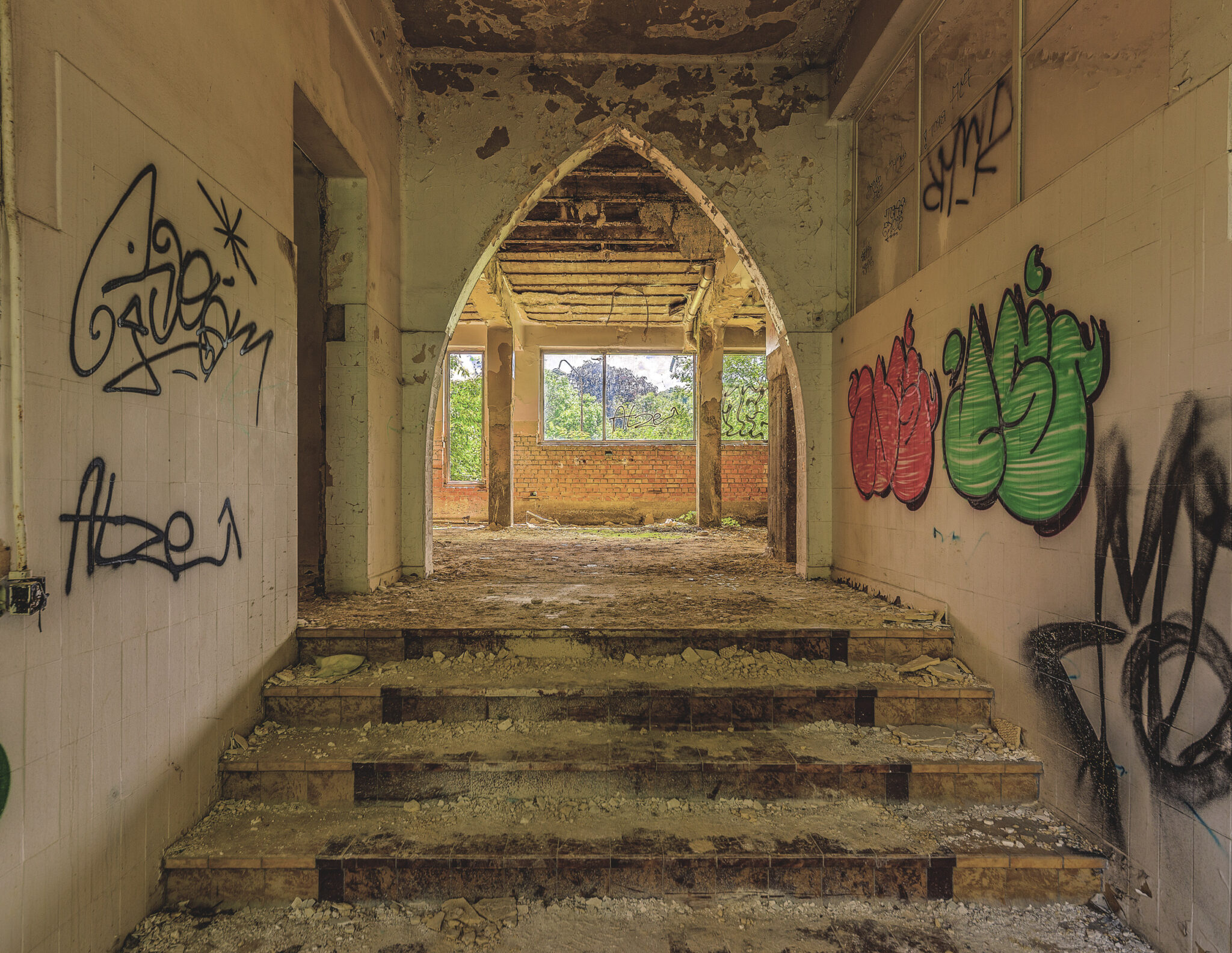 Während meines Besuchs im Jahr 2016 zeigte sich das Gebäude in einem Zustand des fortschreitenden Verfalls. Viele Fenster waren zerbrochen, die Türen fehlten, und die Natur hatte weite Teile des Innenraums erobert. Die langen Flure, die einst von Patienten und Personal genutzt wurden, lagen nun still und verlassen. Doch trotz des offensichtlichen Verfalls gab es auch Anzeichen dafür, dass das Gebäude eine zweite Chance bekommen könnte.