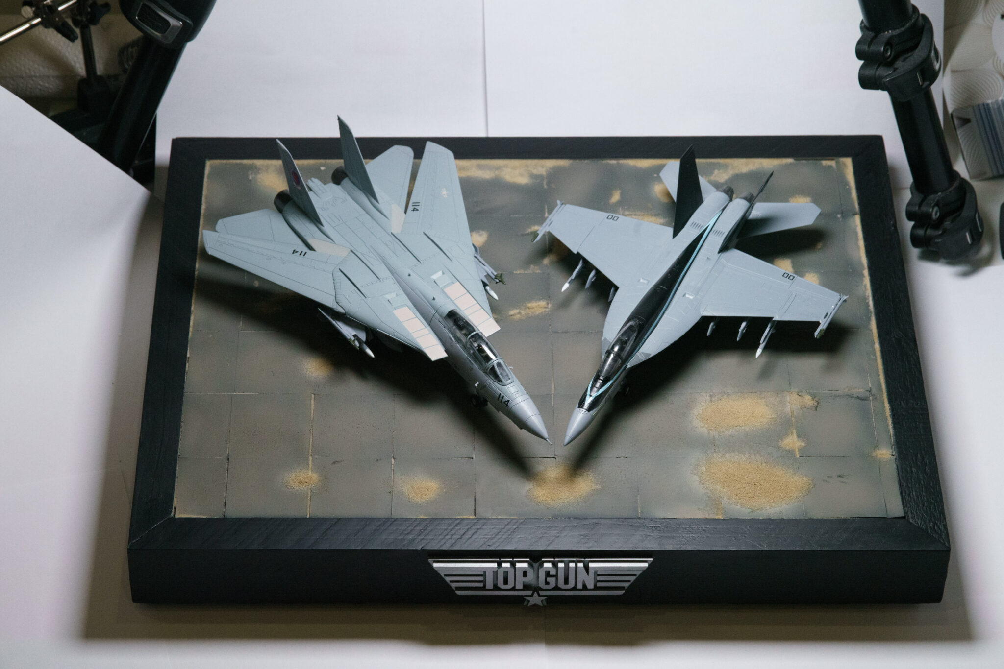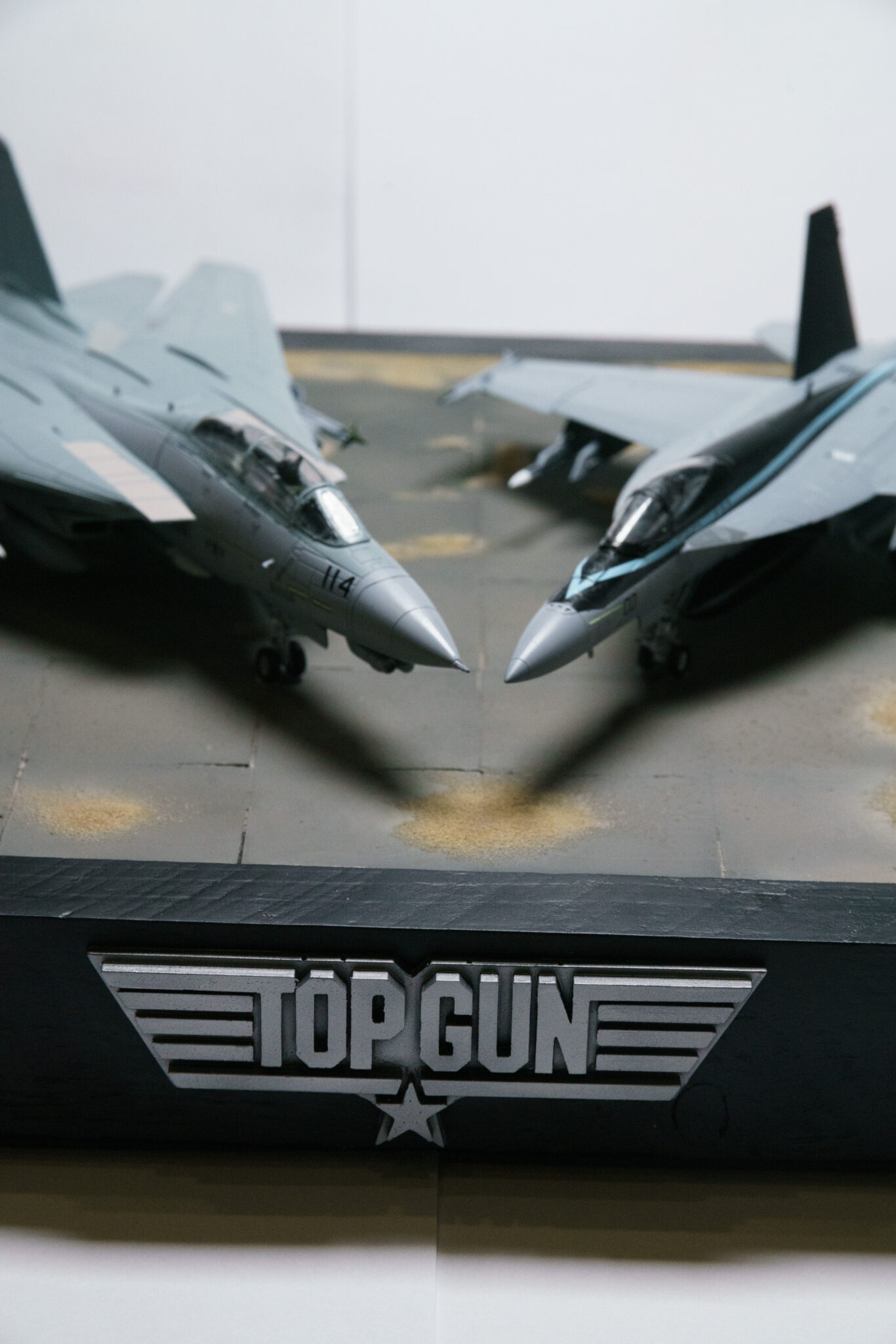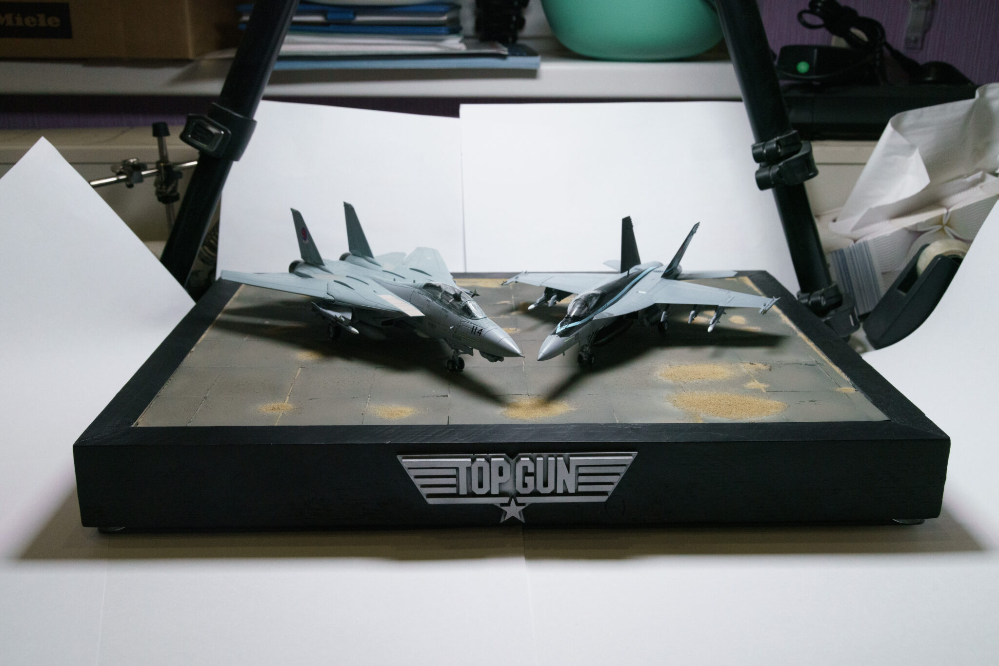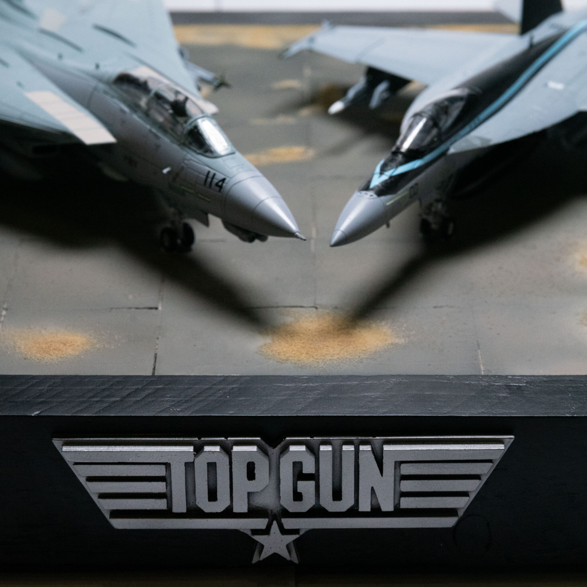 Fünf Wochen Adrenalin. Abende mit der Airbrush, stundenlanges Decalschieben und mehrmals fast verzweifelt – am Ende aber ein zufriedenstellendes Ergebnis. Es ist eben wie im Film: Erst wenn der letzte Handgriff ruht und sich die Silhouette der Jets im Licht reflektiert, spürst du, was Modellbau wirklich ist – Handwerk, Leidenschaft, Geschichte und ein Stück Hollywood fürs Regal. Und besonders: Für den, der das Diorama bekam, war es das perfekte Geschenk. Jeder Blick darauf ist eine kleine Zeitreise, zurück zu den Klängen von „Danger Zone“ und dem Dröhnen der Turbinen in der Wüste.