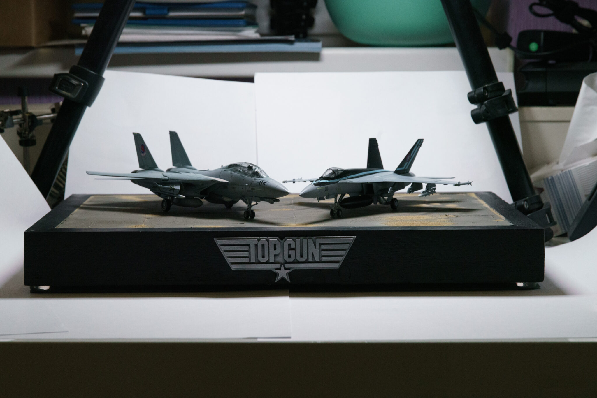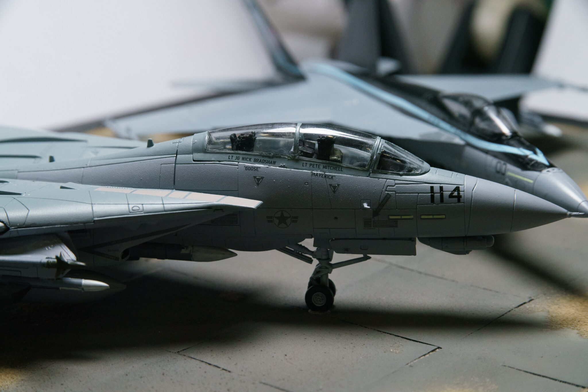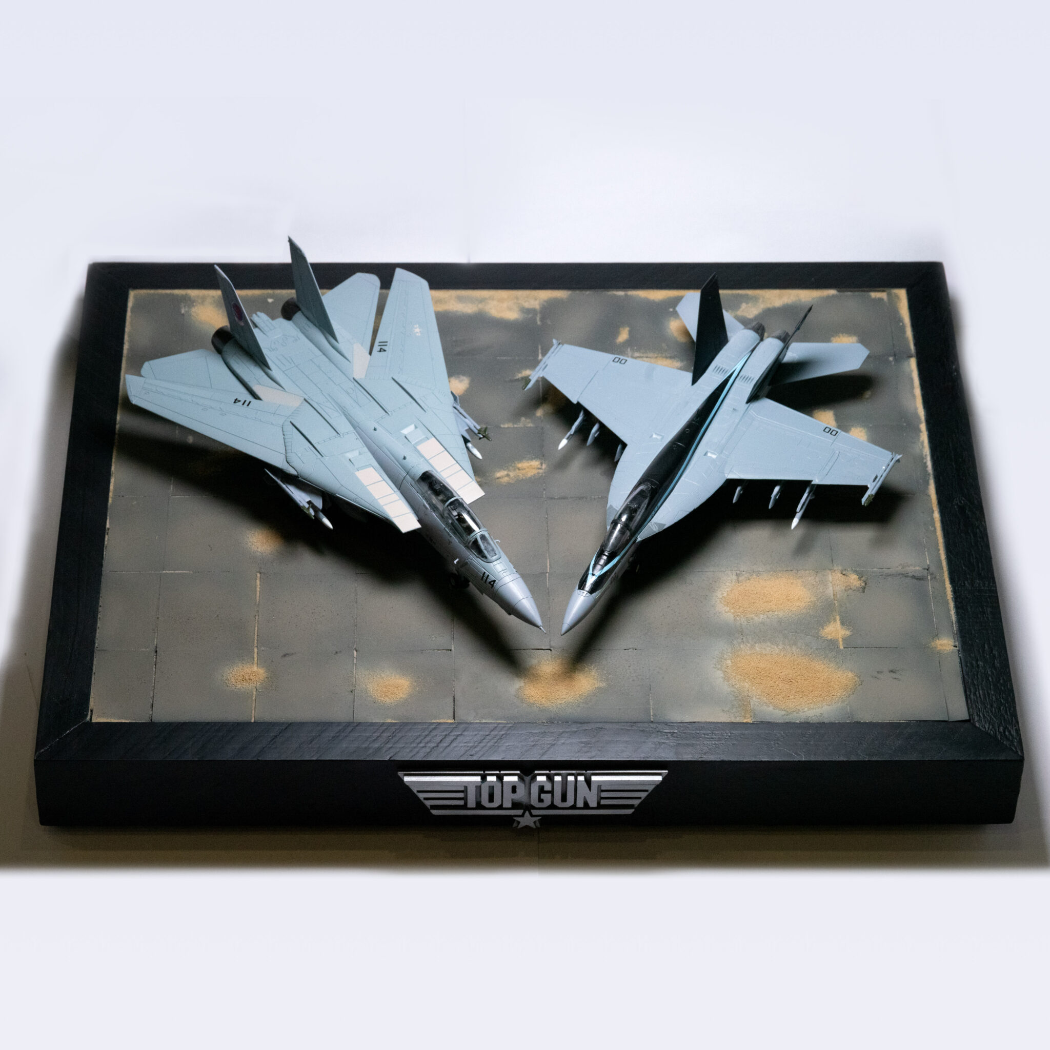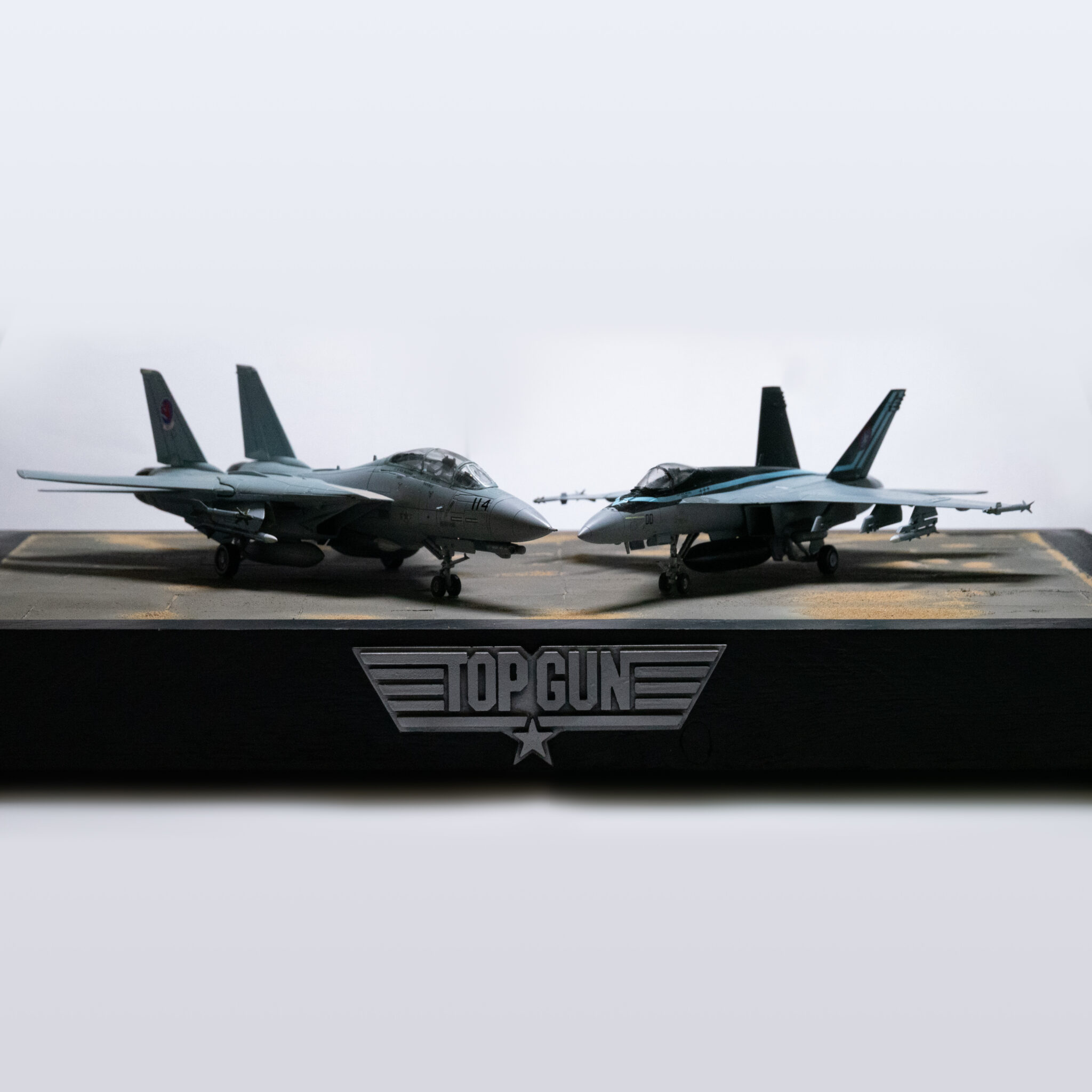 Fünf Wochen Adrenalin. Abende mit der Airbrush, stundenlanges Decalschieben und mehrmals fast verzweifelt – am Ende aber ein zufriedenstellendes Ergebnis. Es ist eben wie im Film: Erst wenn der letzte Handgriff ruht und sich die Silhouette der Jets im Licht reflektiert, spürst du, was Modellbau wirklich ist – Handwerk, Leidenschaft, Geschichte und ein Stück Hollywood fürs Regal. Und besonders: Für den, der das Diorama bekam, war es das perfekte Geschenk. Jeder Blick darauf ist eine kleine Zeitreise, zurück zu den Klängen von „Danger Zone“ und dem Dröhnen der Turbinen in der Wüste.