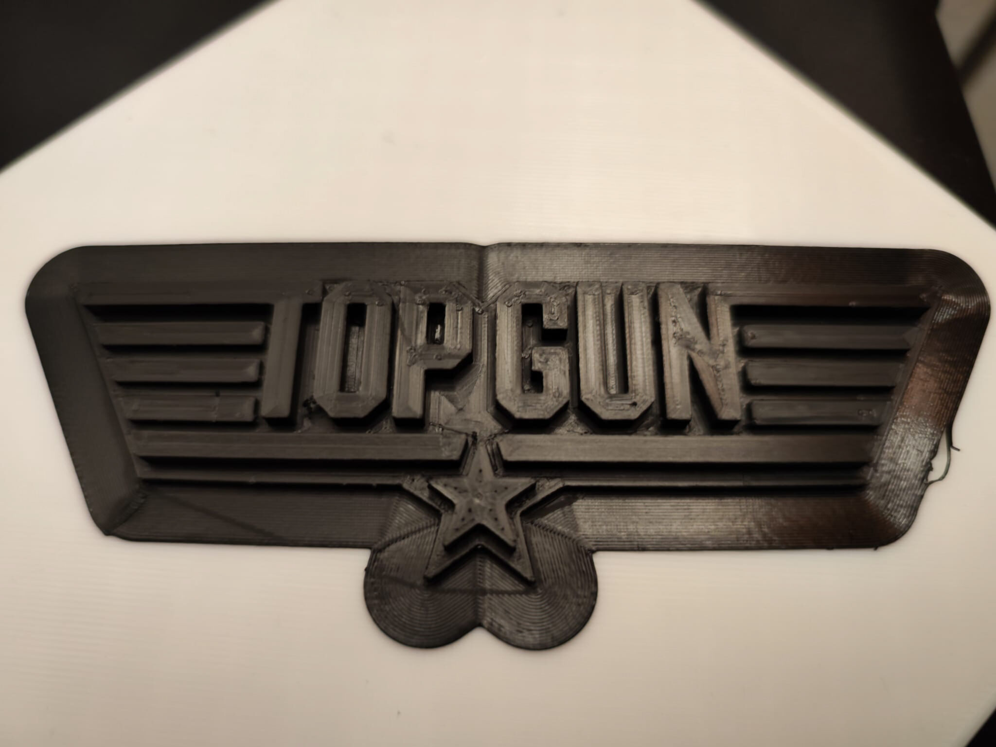 Diorama-Feeling ist alles: Der „Carrier Deck Look“ wurde bewusst abgewandelt – ich baute einen Flugplatz in der Wüste mit staubiger Optik und Betonplattenimitaten aus Cornflakes-Verpackung, die ich mit Sand und Farbe gealtert habe. Das Top-Gun-Logo stammt aus dem 3D-Drucker und wurde silberlackiert auf einen schwarz lakierten Holzrahmen aufgesetzt. Der Rest ist Liebe zum Detail: Ölflecken und Reifenspuren auf den Platten unterstützen die Museumsszenerie.